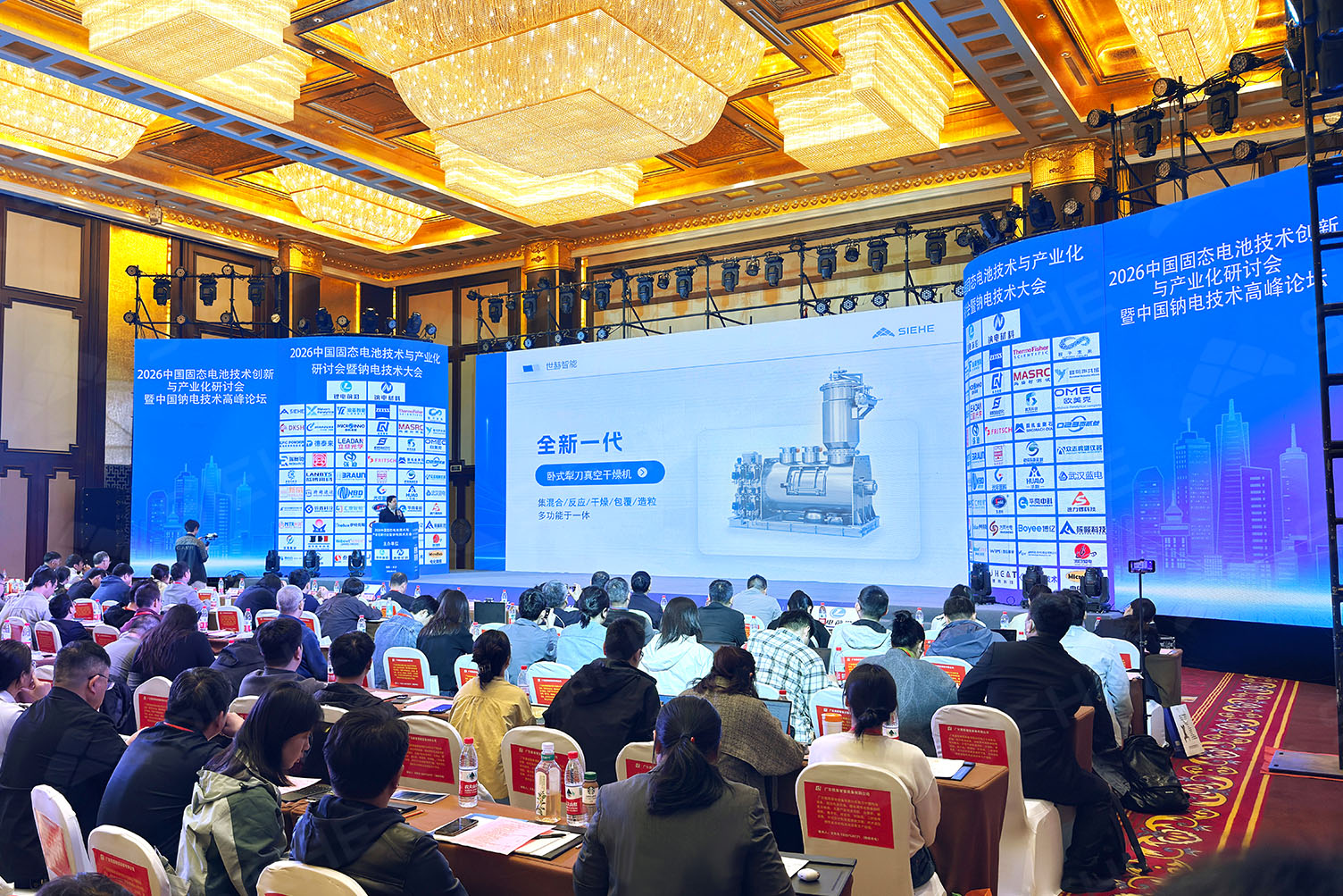 Recently, the 8th China Solid-State Battery Technology Innovation and Industrialization Symposium (2026) was successfully held in Changsha, Hunan. Experts, researchers and enterprise representatives nationwide gathered to discuss technology breakthroughs and industrialization pathways for solid-state batteries. Invited to the event, SIEHE Group highlighted its New-generation Horizontal Plow Vacuum Drying Mixer for sulfide solid-state electrolyte preparation, providing a key solution for sulfide solid-state electrolyte industrialization.